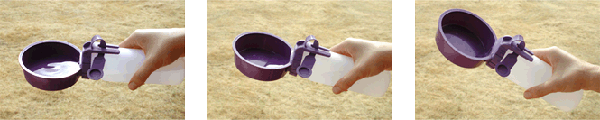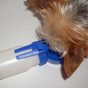 Simple to Use Our Portable Pet Water Travel Bottle is simple to use. When your pet is thirsty, just unplug the bottle, lay the bottle flat on the ground, and the water will automatically flow into the round bowl. When your pet is through drinking, tip the extra water back into the bottle, replace the plug, and clip the water bottle back onto your belt or waistband.