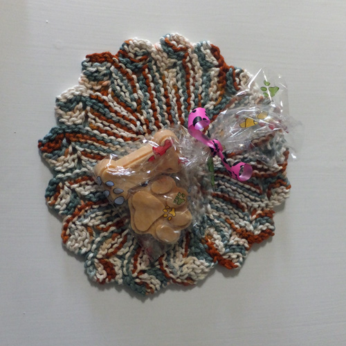 TWO AVAILABLE Round Veragated Rust, Blue, Cream Dishcloth and Soap