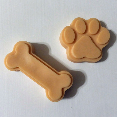 Our bone and paw soaps are made of honey and goat's milk. If you have issues with dry skin these soaps will soften and soothe. An additional plus is the scent is amazing. The bones measure 3" long and the paws measure 2 1/4" wide. The soap comes packaged as in pictures.